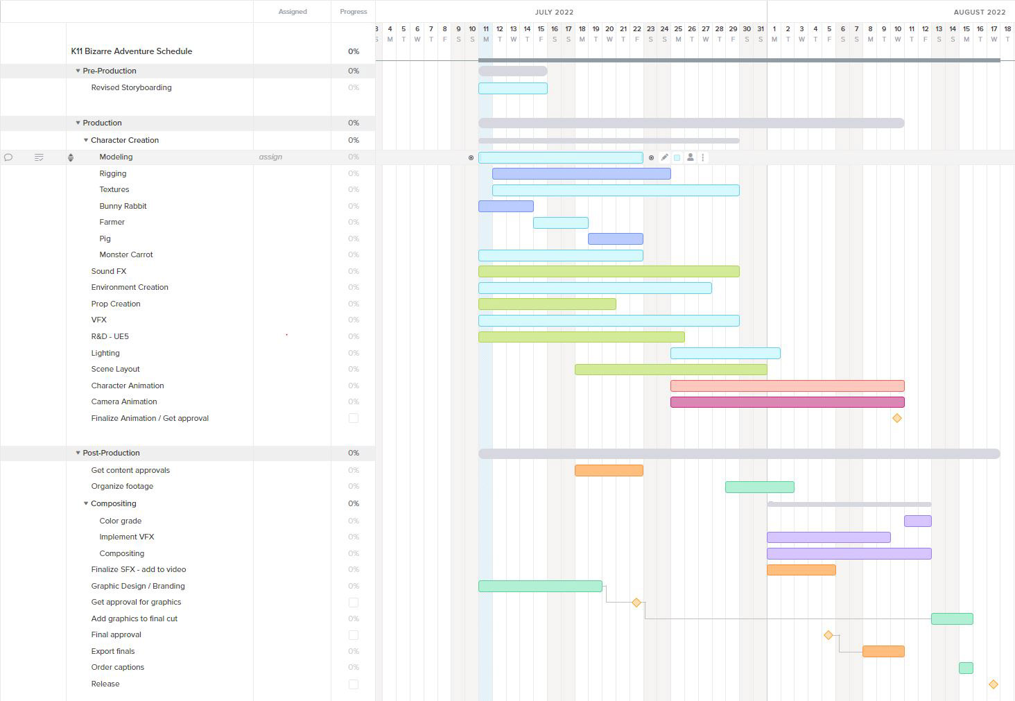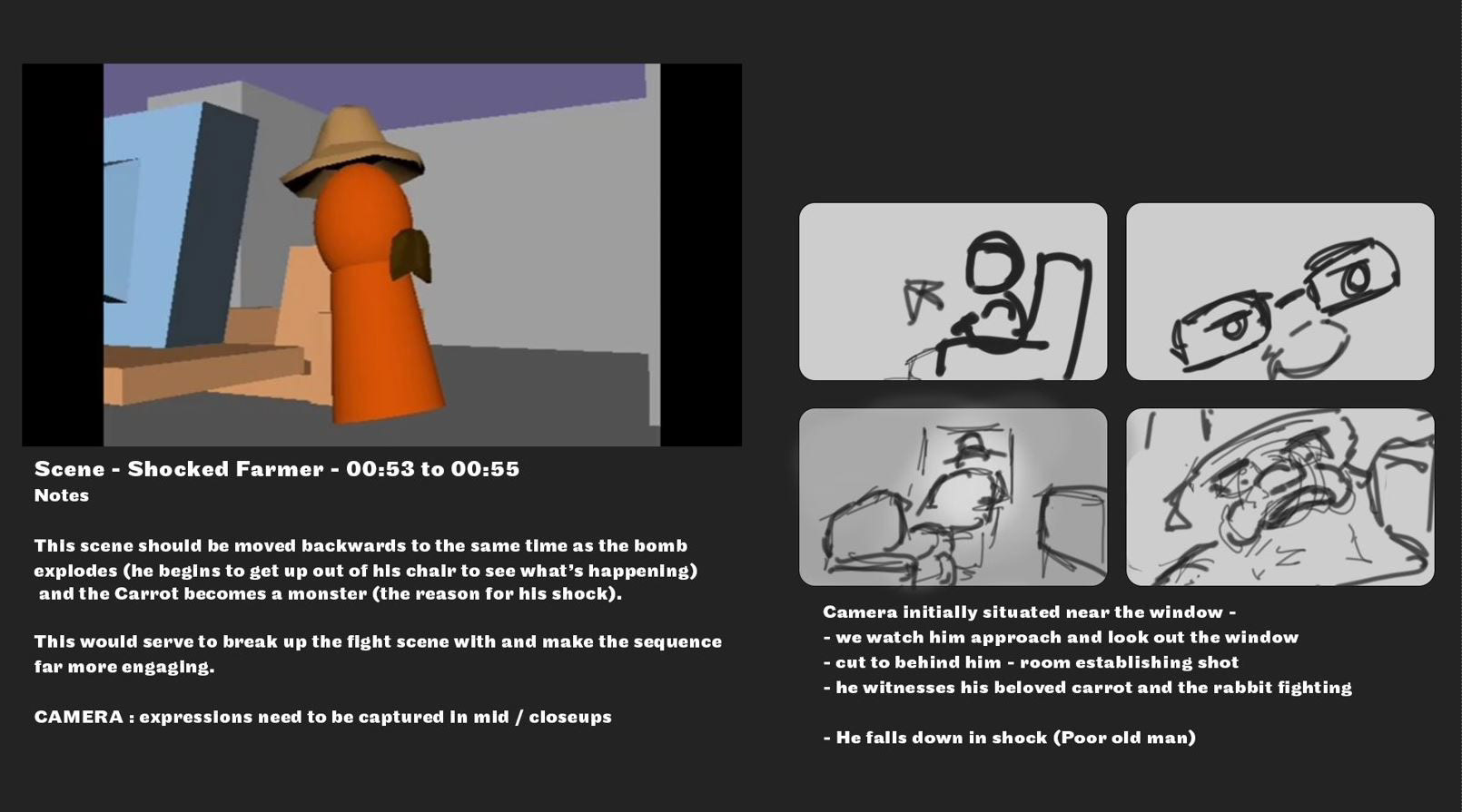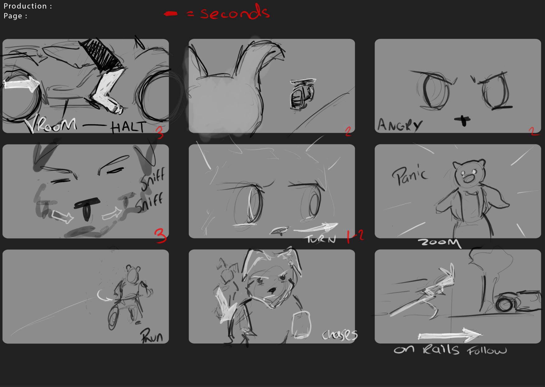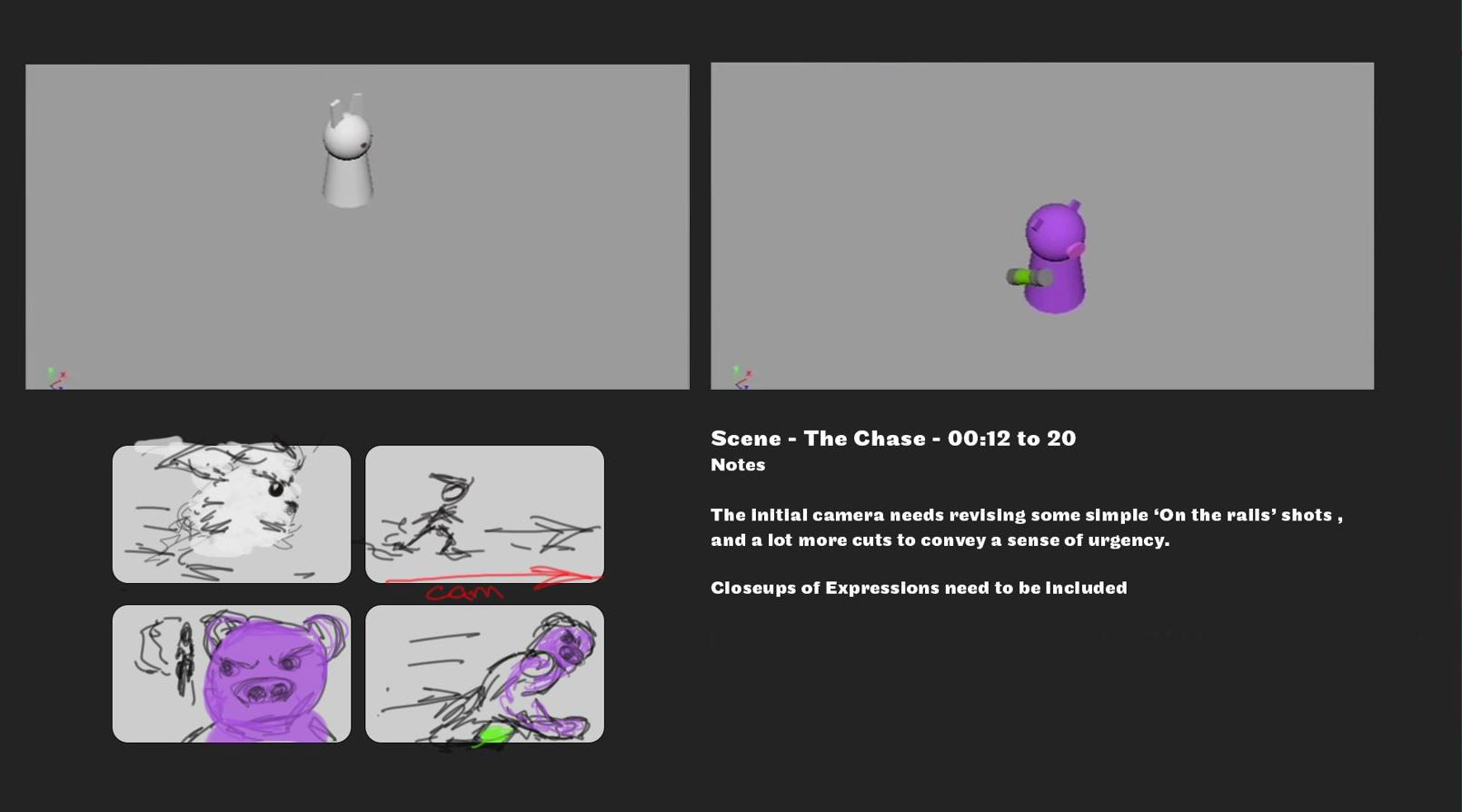 Below are just examples of how I managed the team - via editing scripted scenes and discussions through storyboarding and scheduling